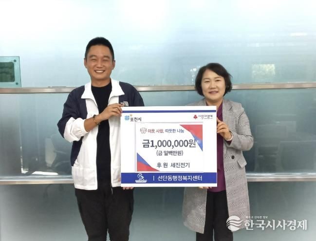 한국시사경제 경기북부취재본부 | 선단동은 세진전기와 군내종합설비에서 각각 이웃돕기를 위한 100만 원을 전달했다고 밝혔다.