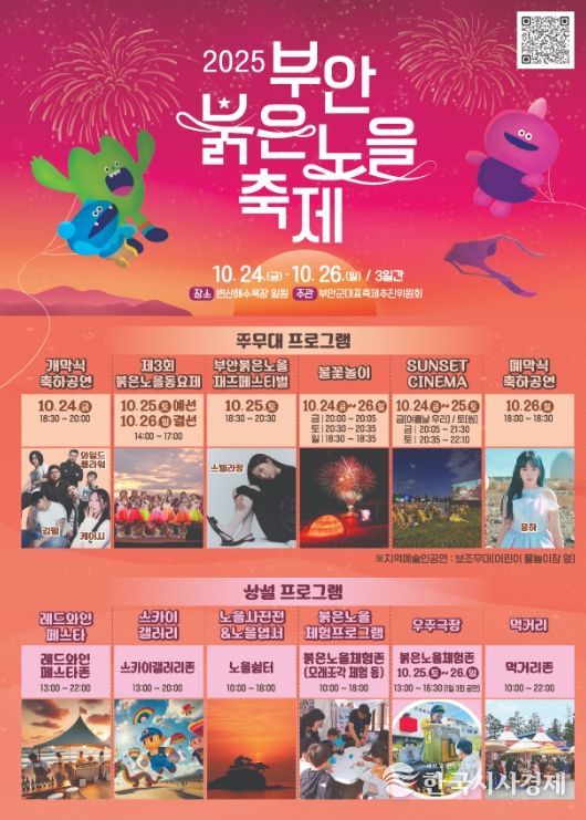 한국시사경제 김숙영 기자 | 2025 부안붉은노을축제가 오는 24일부터 26일까지 3일간 부안 변산해수욕장에서 열린다.