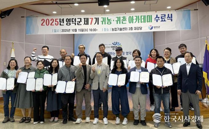 한국시사경제 이정이 기자 | 영덕군이 귀농·귀촌 희망자들의 안정적인 지역 정착을 위해 마련한 ‘2025년 영덕군 귀농·귀촌 아카데미’의 수료식이 지난 15일 농업기술센터 2층 강당에서 교육생 25명이 참석한 가운데 열렸다.