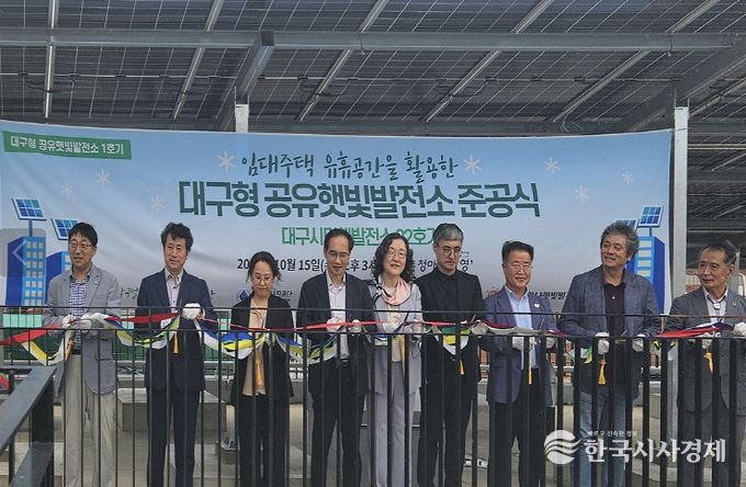 한국시사경제 대구취재본부 | 대구도시개발공사는 10월 15일 서구 ‘인동촌 청아람 더 영’에서 임대주택 유휴 공간을 활용한 대구형 공유햇빛발전소 1호기 준공식을 개최했다.