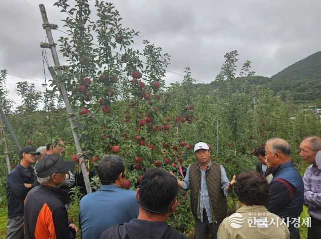 참석자들은 청송 지역의 선도 농장 2개소를 방문해 다축 재배 초기 과원 조성과 토양 관리, 수세 조절, 병해충 방제 기술 등을 집중적으로 학습했다.