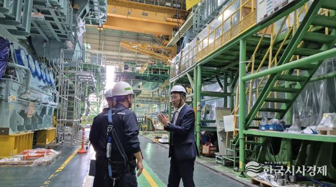 한국시사경제 노승선 기자 | 창원특례시는 17일 한화엔진(주)의 선박엔진 신·증축 공장을 방문해 기업 애로사항을 청취하고 생산시설을 둘러보는 시간을 가졌다.