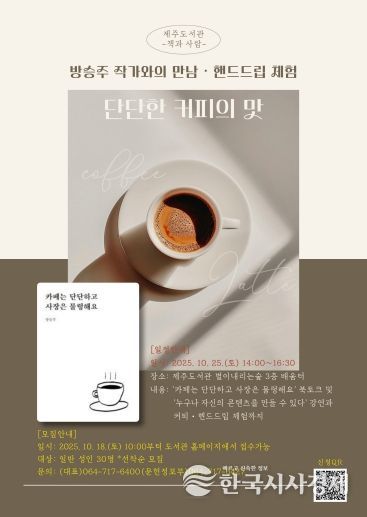 한국시사경제 노승선 기자 | 제주도서관은 오는 25일 오후 2시 제주도서관 내‘별이 내리는 숲’에서 카페단단 대표이자 에세이 작가인 방승주 작가와의 만남을 운영한다.