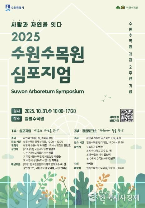 한국시사경제 기동취재팀 | 수원수목원은 10월 31일 오전 10시 일월수목원에서 ‘2025 수원수목원 심포지엄 '사람과 자연을 잇다'’를 연다.