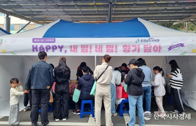 한국시사경제 충남취재본부 | 충청남도태안교육지원청은 10월 18일 태안군가족공감센터 주차장에서 열린 제5회 태안가족축제에 참여해 ‘HAPPY, 내 맘! 네 맘! 향기담아’라는 주제로 디퓨저 만들기 체험 부스를 운영했다.
