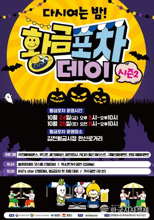 한국시사경제 권충언 기자 | 김천시에서는 황금시장상인회가 10월 24~25일 ‘다시 여는 밤, 황금포차 데이’를, 부곡맛고을상인회(회장 김동건)가 25~26일 ‘부곡맛고을 축제, 스위치 온’을 각각 개최한다고 밝혔다.