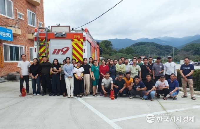 한국시사경제 경남취재본부 | 함양군은 지난 19일 외국인 계절근로자 32명을 대상으로 함양소방서와 합동으로 화재대피 훈련을 진행했다고 밝혔다.