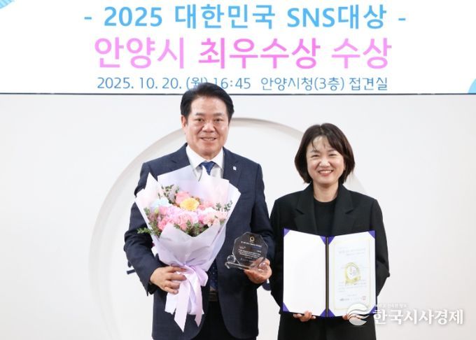 한국시사경제 경기취재본부 | 안양시가 ‘제15회 2025 대한민국 SNS 대상’ 기초지방자치단체 시 부문에서 최우수상을 수상했다.