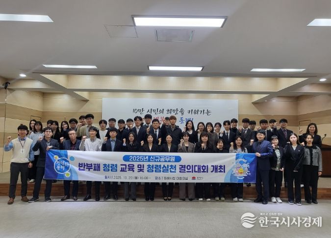 한국시사경제 권충언 기자 | 동해시는 2025년 신규 공무원 임용에 따라 공직생활을 시작하는 신규 공무원을 대상으로 청렴의식 함양과 공직자로서의 올바른 자세 확립을 위해 청렴 실천 결의대회를 개최했다고 밝혔다.