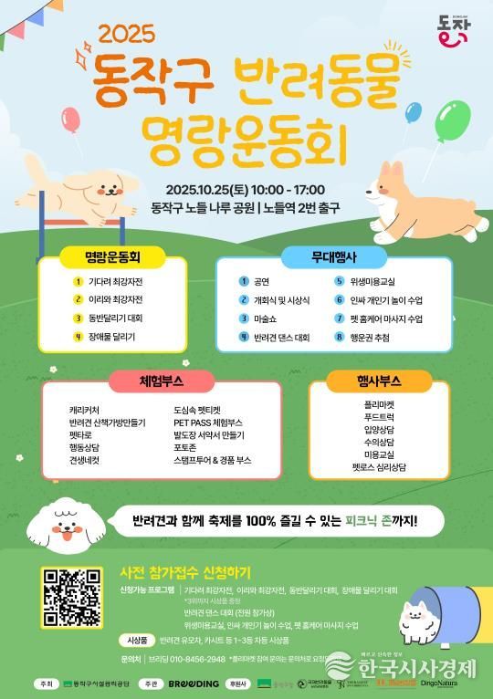 한국시사경제 권충현 기자 | 동작구가 오는 25일 노들나루공원(노량진로 247)에서 ‘2025 반려동물 명랑운동회’를 개최한다고 밝혔다.
