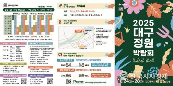 한국시사경제 대구취재본부 | 대구광역시는 일상 속 정원문화를 확산하고 도심 속 녹색 힐링공간을 선보이는 ‘2025 대구정원박람회’를 10월 24일부터 28일까지 5일간 금호강 하중도 일원에서 개최한다.
