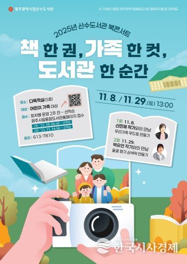 한국시사경제 광주취재본부 | 광주광역시립산수도서관이 오는 11월 8일과 29일 두 차례 ‘가족을 위한 북콘서트’를 개최한다.