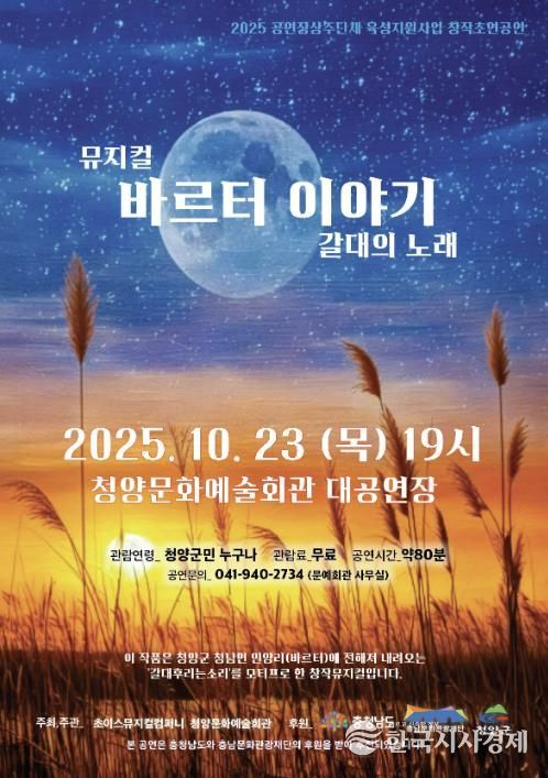 한국시사경제 충남취재본부 | 청양군은 오는 23일 오후 7시 청양문화예술회관 대공연장에서 창작 뮤지컬 ‘바르터 이야기 갈대의 노래’를 선보인다.
