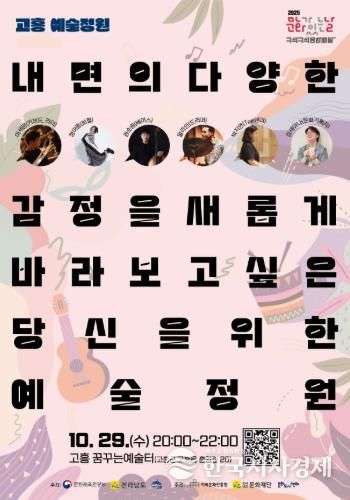 한국시사경제 전남취재본부 | 고흥군과 고흥군 문화도시센터는 ‘10월 문화가 있는 날 구석구석 문화배달–고흥예술정원’ 프로그램을 오는 10월 29일 오후 8시, 고흥 꿈꾸는예술터에서 진행한다고 밝혔다.