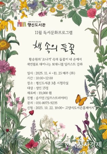 한국시사경제 윤광희 기자 | 고양특례시 행신도서관은 성인을 대상으로 ‘책 속의 들꽃’을 운영한다고 밝혔다.