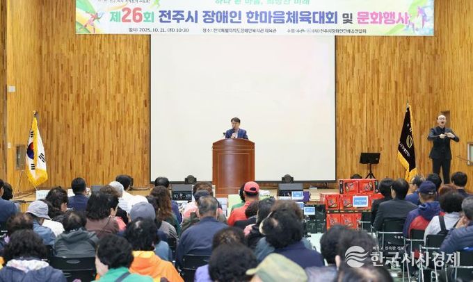 ‘제26회 전주시 장애인 한마음 체육대회 및 문화행사’가 전주지역 장애인과 비장애인 등 450여 명이 참석한 가운데 21일 전북특별자치도장애인복지관 체육관에서 열렸다.