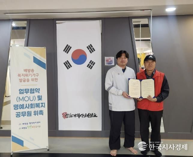 한국시사경제 충남취재본부 | 아산시 배방읍 행복키움추진단은 지난 20일 공수리에 위치한 경희대 석사 태권도학원(대표 박초롱)과 위기가구 발굴을 위한 업무협약을 체결했다.