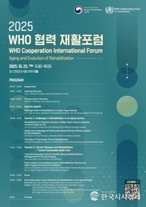 한국시사경제 의료보건팀 | 보건복지부 국립재활원은 10월 23일 피스앤파크 컨벤션(서울 용산구)에서 ‘세계보건기구(WHO) 협력 재활 토론회’를 대면 및 온라인으로 동시 개최한다.
