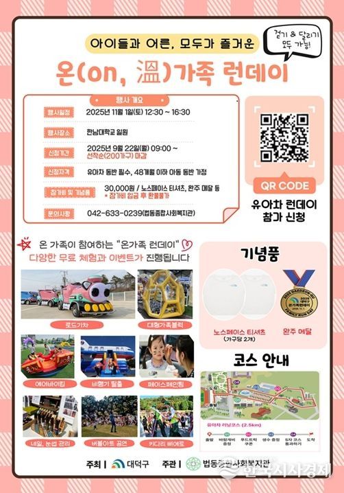 한국시사경제 대전취재본부 | 대전 대덕구는 오는 11월 1일 낮 12시 30분부터 한남대학교 일원에서 가족이 함께 달리고 체험하는 ‘온(ON·溫) 가족 런데이’를 개최한다.
