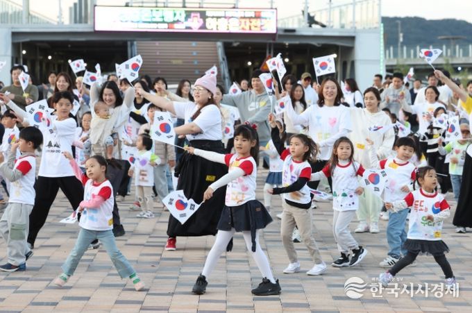 한국시사경제 세종취재분부 | 세종특별자치시 솔빛숲유치원(원장 박수미)은 광복 80주년과 독도의 날을 맞이하여 10월 24일 오후, 원아·학부모·교사 400여 명이 함께하는 ‘독도 사랑 플래시몹 행사’를 개최했다.
