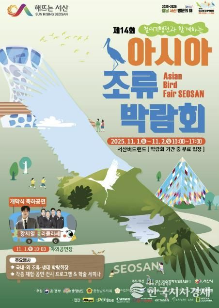 한국시사경제 충남취재본부 | 충남 서산시는 서산버드랜드에서 오는 11월 1일부터 2일까지 ‘한국의 둥지 천수만, 세계의 둥지를 서산에 틀다’를 주제로 제14회 아시아 조류박람회를 개최한다고 밝혔다.