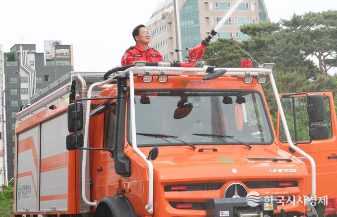 올해 5월 도입한 고성능산불진화차량은 대형 분사호스를 사용하여 주불진화가 가능하며, 자체 차량 보호를 위한 분사장치가 있어 산불 현장에 고립되어도 스스로 현장을 이탈할 수 있어 유사시 인명피해를 예방할 수 있을 것으로 기대하고 있다.