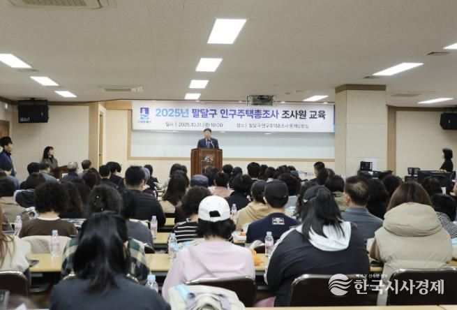 한국시사경제 사회팀 | 수원시 팔달구는 지난 10월 31일, 영동시장 소재 28청춘몰 영동아트홀에서 조사원 121명을 대상으로 ‘2025년 인구주택총조사 조사원 사전준비 교육’을 실시했다.