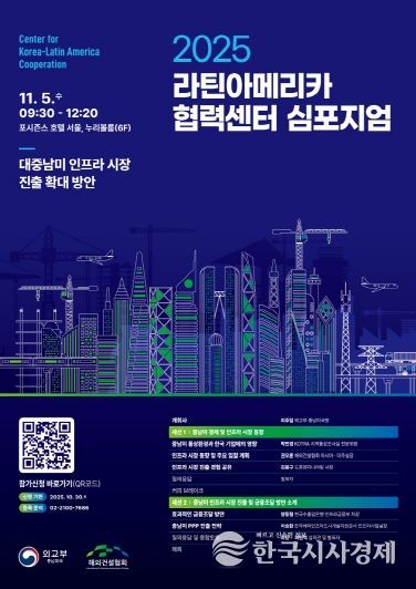 한국시사경제 해외팀 | 외교부는 11월 5일 서울 광화문 포시즌스 호텔에서 '2025 라틴아메리카 협력센터 심포지엄'을 개최한다. 올해로 17회째를 맞는 동 심포지엄은 라틴아메리카 협력센터의 연례 사업으로, 중남미 시장 동향과 진출 정보를 공유하고, 중남미 진출을 희망하는 우리국민들에게 네트워크의 장을 마련해왔다.