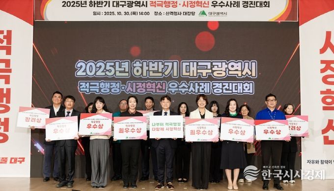 한국시사경제 대구취재본부 | 대구광역시는 10월 30일 산격청사 대강당에서 ‘2025년 하반기 적극행정·시정혁신 우수사례 경진대회’를 개최하고, 총 14건의 우수사례(최우수 2, 우수 4, 장려 8)를 선정해 시상했다.