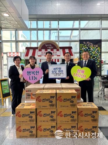 한국시사경제 경남취재본부 | 거창군 거창읍 지역사회보장협의체은 지난 4일 거창군 재활용선별시설 근로자 16명 과 관리직원 2명이 거창읍 공유냉장고 ‘찾아가는 나눔곳간’에 40만 원 상당 라면을 기부했다고 밝혔다.