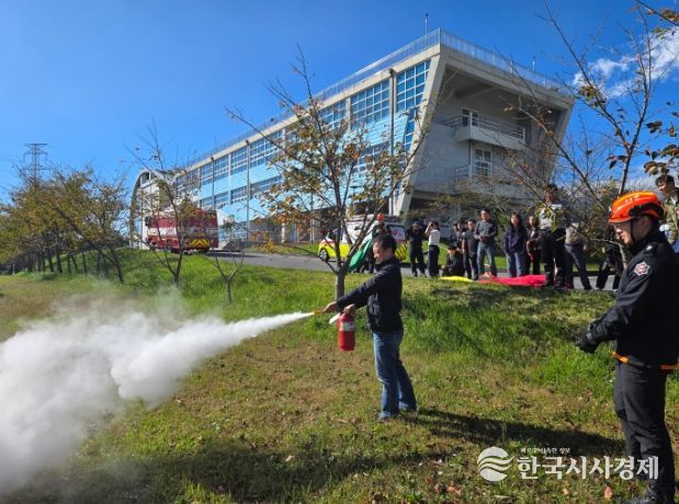 한국시사경제 노승선 기자 | 제주테크노파크(원장 지영흔)는 지난 10월 27일 서귀포시 신례리에 위치한 제주테크노파크 청정바이오사업본부 생물종다양성연구소에서 임직원과 함께 연구시설 합동 화재대응 소방훈련을 실시했다고 밝혔다.