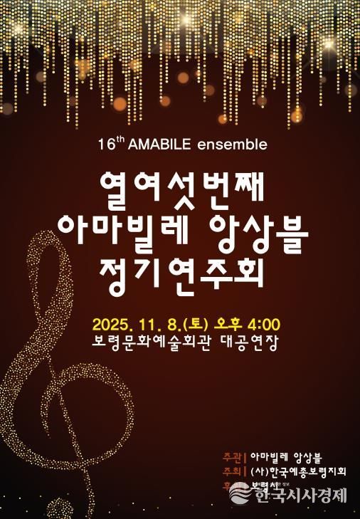 한국시사경제 오영주 기자 | 보령시는 아마빌레 앙상블이 오는 11월 8일 보령문화예술회관 대공연장에서 제16회 정기연주회를 개최한다고 밝혔다.