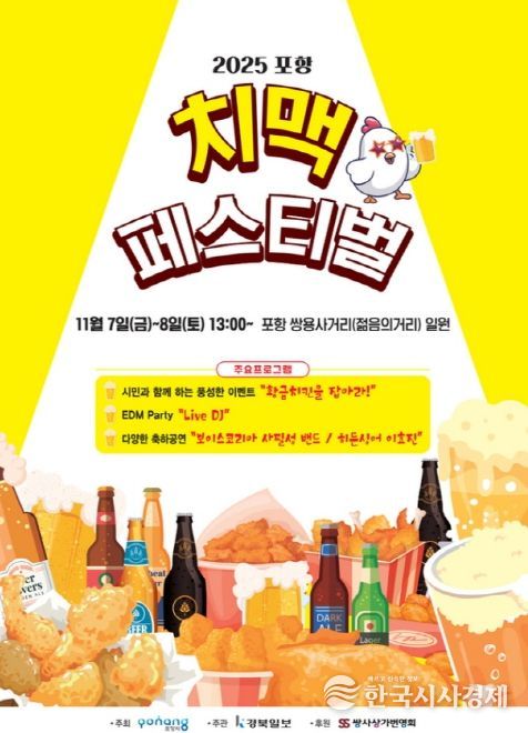 한국시사경제 경제팀 | 포항시는 오는 7일부터 8일 양일간 쌍용사거리 일원에서 경북일보가 주최·주관하고 포항시, 포항시의회, 포항상공회의소, 쌍사상가번영회 후원으로 진행되는 ‘2025 포항치맥페스티벌’을 개최한다.