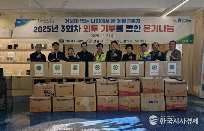 이날 행사에는 박정숙 안동시4-H본부 회장과 회원을 비롯해 신정식 안동와룡농협 조합장 등이 참여해, 안동시에서 근무 중인 공공형 외국인 계절근로자에게 겨울옷 1,000여 벌을 전달하며 따뜻한 마음을 나눴다.