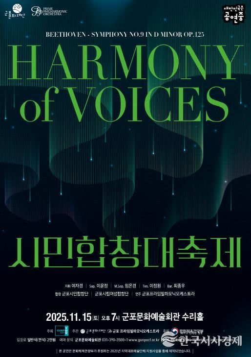 한국시사경제 기동취재팀 | 군포문화재단은 오는 11월 15일 오후 7시, 군포문화예술회관 수리홀에서 시민과 함께하는 대규모 클래식 공연 “2025 시민합창대축제”를 개최한다.