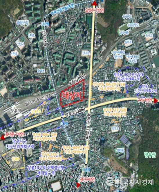 이번 계획은 제2종일반주거지역(7층 이하)을 제3종일반주거지역으로 전면 상향해 사업성을 높였다. 도로 여건도 크게 개선한다. 망우로63길을 기존 6m에서 11m로 확폭해 보차혼용 도로를 양측 보도를 갖춘 진출입로로 바꾼다. 망우로63길에는 공동이용시설을, 용마산로변에는 연도형 가로활성화 시설을 배치해 지역 주민이 이용할 수 있는 생활공간을 만든다.