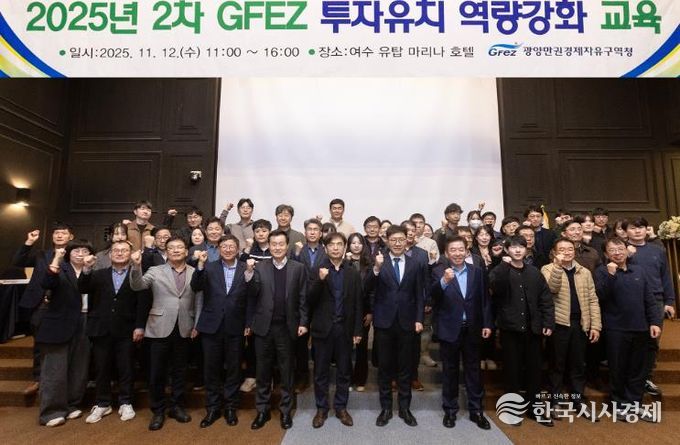 한국시사경제 권충언 기자 | 광양만권경제자유구역청은 11월 12일 여수 유탑마리나호텔에서 직원 70여 명이 참석한 가운데 ‘2025년 하반기 투자유치 역량강화 교육’을 실시했다고 밝혔다.