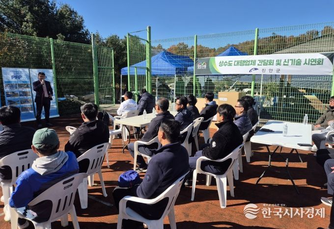 한국시사경제 김숙영 기자 | 진안군은 지난 11일 산약초 타운에서 관내 상하수도 대행업체 대표 및 실무자, 상하수도과 관계자 등 50여명이 참석한 가운데 ‘상하수도 대행업체 간담회 및 신기술 시연회’를 개최했다.