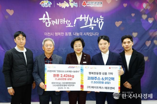 한국시사경제 기동취재팀 | 이천시는 11월 13일 시청에서 지역 사회를 위한 따뜻한 나눔이 이어졌다고 밝혔다. 이날 기탁식에는 (사)대한한돈협회 이천지부와 ㈜에이트랙스 애프앤비가 참여해 이웃사랑 실천에 동참했다.