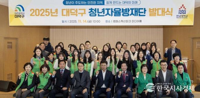 한국시사경제 대전취재본부 | 대전 대덕구는 14일 한남대학교 캠퍼스혁신파크에서 ‘대덕구 청년자율방재단’ 발대식을 열고 청년 중심의 지역 재난안전 활동을 본격화한다고 밝혔다.