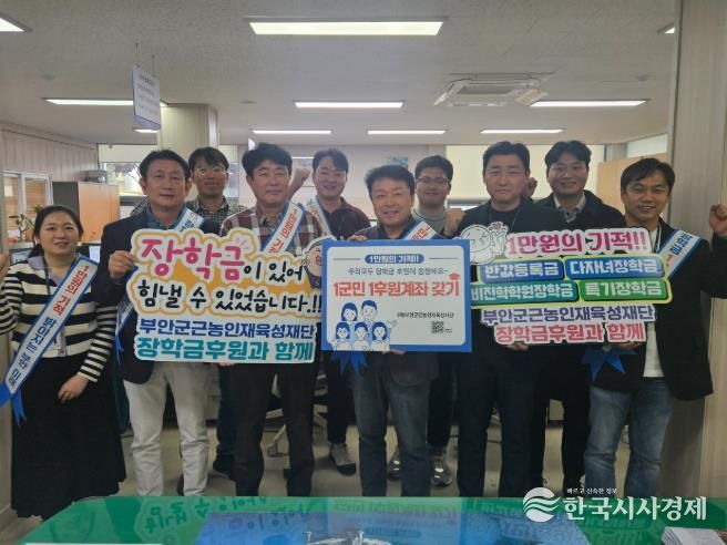 한국시사경제 김숙영 기자 | 부안군 상하수도사업소는 최근 (재)부안군근농인재육성재단이 추진 중인 장학금 1군민 1후원계좌갖기 릴레이 캠페인에 참여하며 지역 인재 육성에 힘을 보탰다.