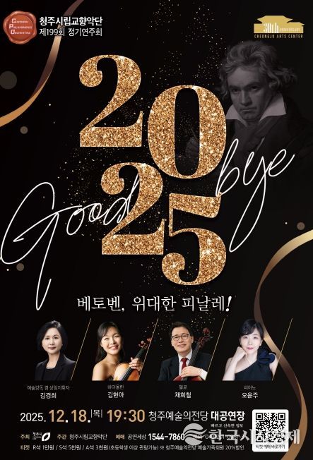 한국시사경제 오영주 기자 | 청주시립교향악단은 오는 12월 18일 오후 7시 30분 청주예술의전당 대공연장에서 제199회 정기연주회 ‘Good bye 2025 – 베토벤, 위대한 피날레!’ 공연을 개최한다.