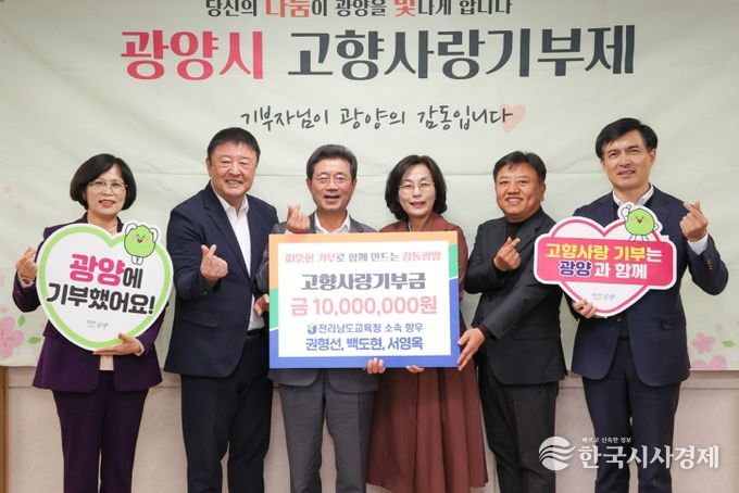 한국시사경제 권충언 기자 | 광양시는 전남교육청 소속 광양출신 향우 3명이 고향사랑의 뜻을 모아 총 1,000만 원의 고향사랑기부금을 전달했다고 밝혔다.