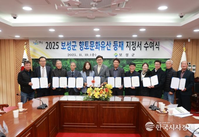 한국시사경제 권충언 기자 | 보성군은 2025년 향토문화유산 발굴 사업을 통해 총 12건의 신규 유산을 확인하고, 향토문화유산보호위원회의 심의 및 지정 예고 기간을 거쳐 19일 군수 지정서를 최종 발급했다고 밝혔다.