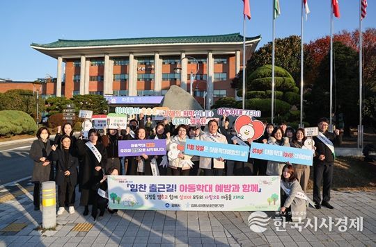 한국시사경제 문화팀 | 김해시는 아동학대예방의 날인 19일 시청 정문에서 김해시아동보호전문기관과 함께 ‘힘찬 출근길, 아동학대 예방과 함께’ 캠페인을 개최했다.