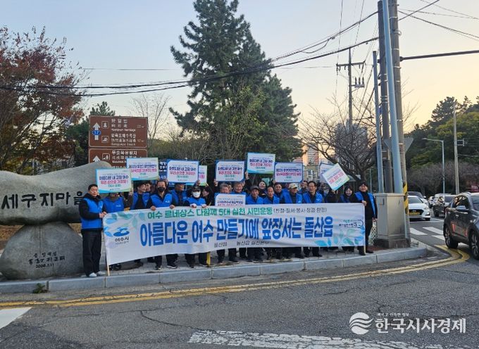 한국시사경제 전남취재본부 | 여수시 돌산읍은 지난 19일 세구지삼거리 일원에서 여수 르네상스 다함께 5대 실천 시민운동 캠페인을 전개하며 2026여수세계섬박람회 성공 개최에 힘을 보탰다.