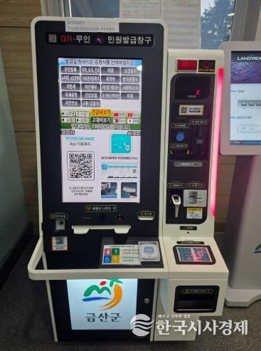 한국시사경제 김태훈 기자 | 금산군은 지난 19일 금산군청 민원실 및 금산읍·추부면행정복지센터에 설치된 노후민원발급기 3대를 교체했다.