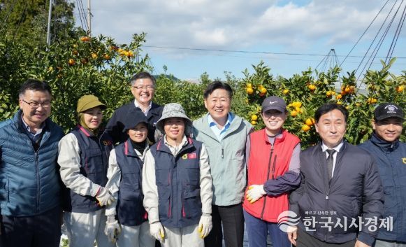 한국시사경제 문화팀 | 오영훈 제주특별자치도지사가 20일 오후 서귀포시 남원읍 위미리 온주밀감 수확 농장을 찾아 일손 돕기에 나섰다.