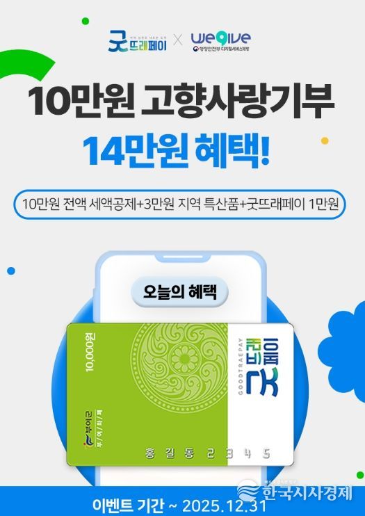 이번 이벤트는 고향사랑기부제 참여자에게 지역화폐를 제공함으로써 지역 내 소비를 촉진하고 지역 경제 활성화에 큰 도움이 될 것으로 예상된다.