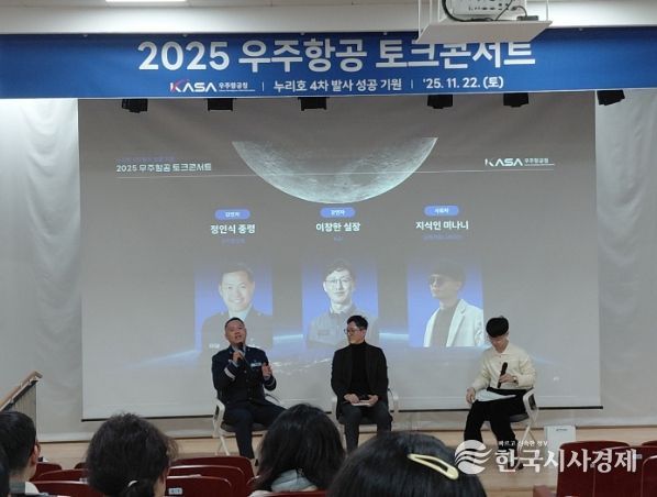 이날 우주를 주제로한 토크 콘서트에는 우주항공청 정인식 중령과 한국항공우주산업 이창한 실장이 강연자로 나서 발사체와 우주에 대한 다양한 이야기를 전달했다. 진행은 과학커뮤니케이터 ‘지식인 미나니’가 맡았다.